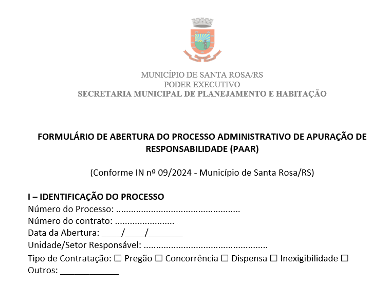 Formulário de abertura de processo administrativo de apuração de responsabilidade (PAAR)